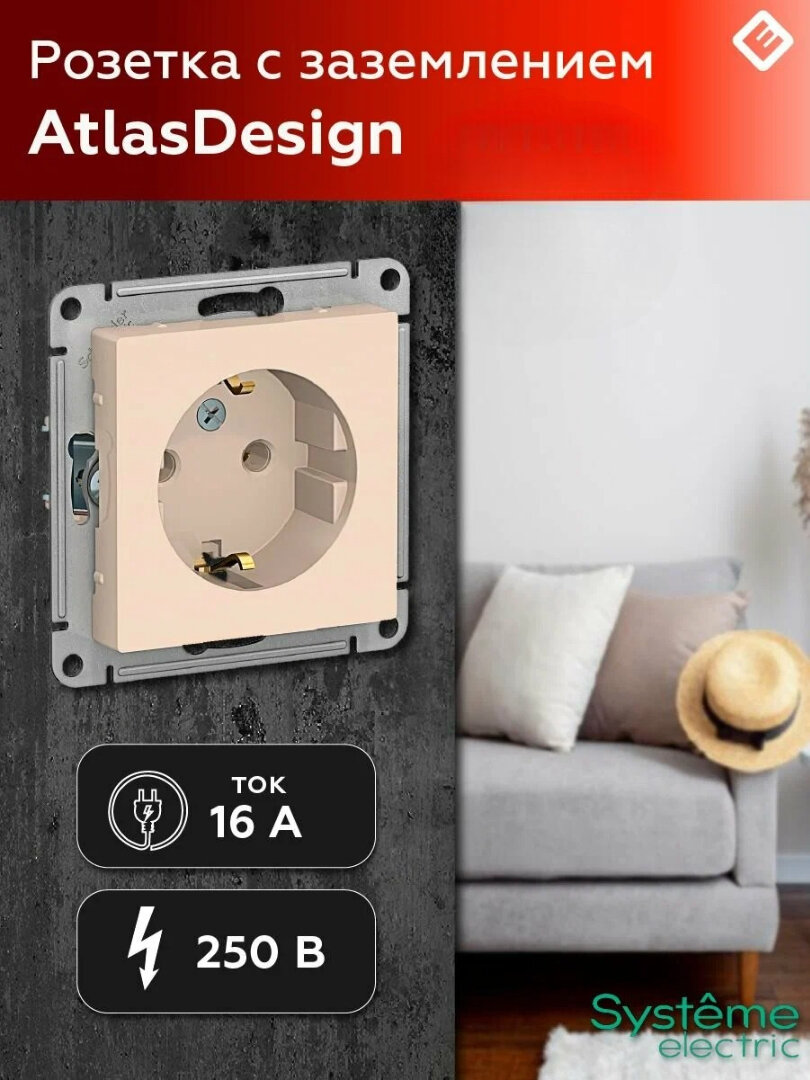 Купить Розетка с заземлением, бежевая (Schneider Electric AtlasDesign) Глянцевая с доставкой по всей России. Розетка с заземлением, бежевая (Schneider Electric AtlasDesign) Глянцевая: сравнение цен, характеристики, фото, актуальное наличие и цены.