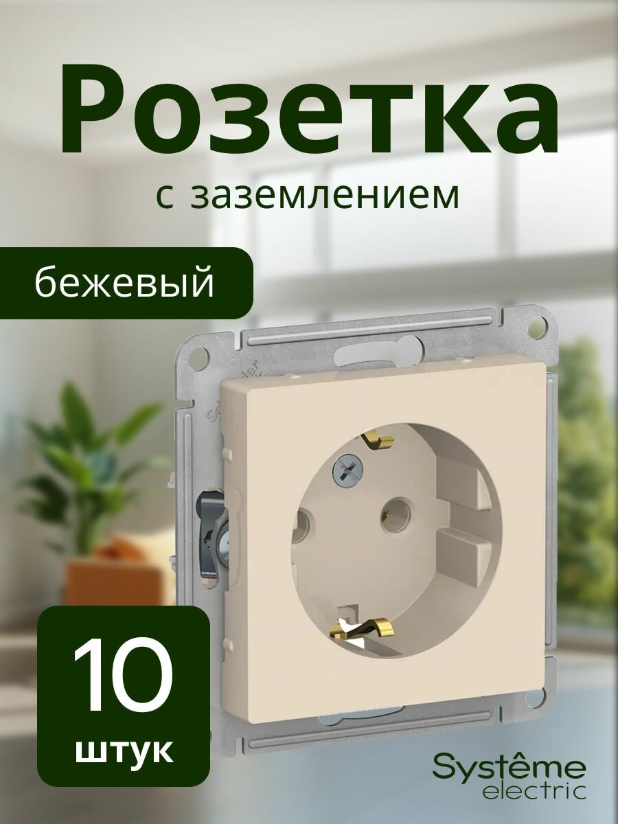 Розетка с заземлением бежевая Atlas Design, 10 шт, Schneider Electric/Systeme Electric ATN000243: сравнение цен, характеристики, фото, актуальное наличие и цены.