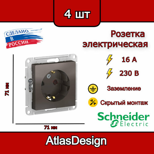 Купить Розетка с заземлением, со шторками, мокко Schneider Electric AtlasDesign (комплект 4шт) с доставкой по всей России. Розетка с заземлением, со шторками, мокко Schneider Electric AtlasDesign (комплект 4шт): сравнение цен, характеристики, фото, актуальное наличие и цены.