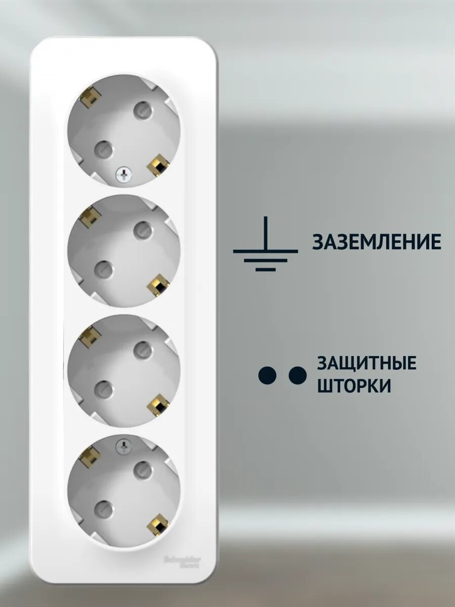 Розетка Schneider Electric Blanca четырехместная с заземлением с защитными шторками белая для открытой проводки (комплект из 3 шт): сравнение цен, характеристики, фото, актуальное наличие и цены.