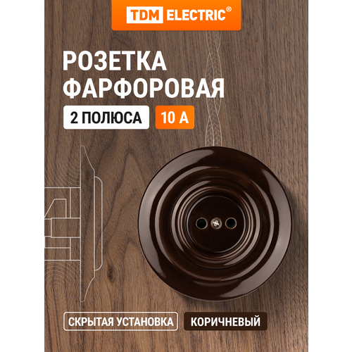 Розетка скрытой установки фарфоровая 2П 10А 250В коричневая «Болонь» TDM: сравнение цен, характеристики, фото, актуальное наличие и цены.