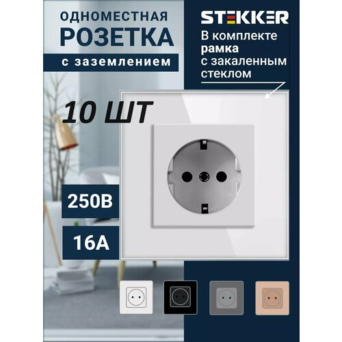 В комплекте 10 штук! Дорогие покупатели, торговая марка Stekker предлагает Вам прекрасное, шикарное и эстетическое решение для Вашего интерьера! Большой плюс розетки стекло - она легко сочетается с обстановкой любого помещения. Лицевая рамка розетки одинарной внутренней выполнена из осветленного, закаленного стекла, устойчивого к появлению царапин, легко очищается с помощью влажной салфетки и стильно выглядит в интерьере. Встраиваемая розетка белая - это удобный выбор для тех, кто не хочет видеть провода на поверхности стен и пола. Розетка с заземлением одинарная - это модное и современное решение для тех, кто не хочет видеть провода на поверхности стен и пола. Розетка накладная подходит для использования в стандартном круглом подрозетнике и предназначена для сетей с напряжением 250 В и током до 16 А. Мы рады предложить Вам обновить свое пространство с помощью простых в установке изделий. Желаем вам приятных покупок, друзья!