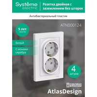 Купить Розетка Systeme Electric AtlasDesign двойная, с заземлением, 16А, 250В, в сборе, белая (комплект из 4 шт.) с доставкой по всей России.