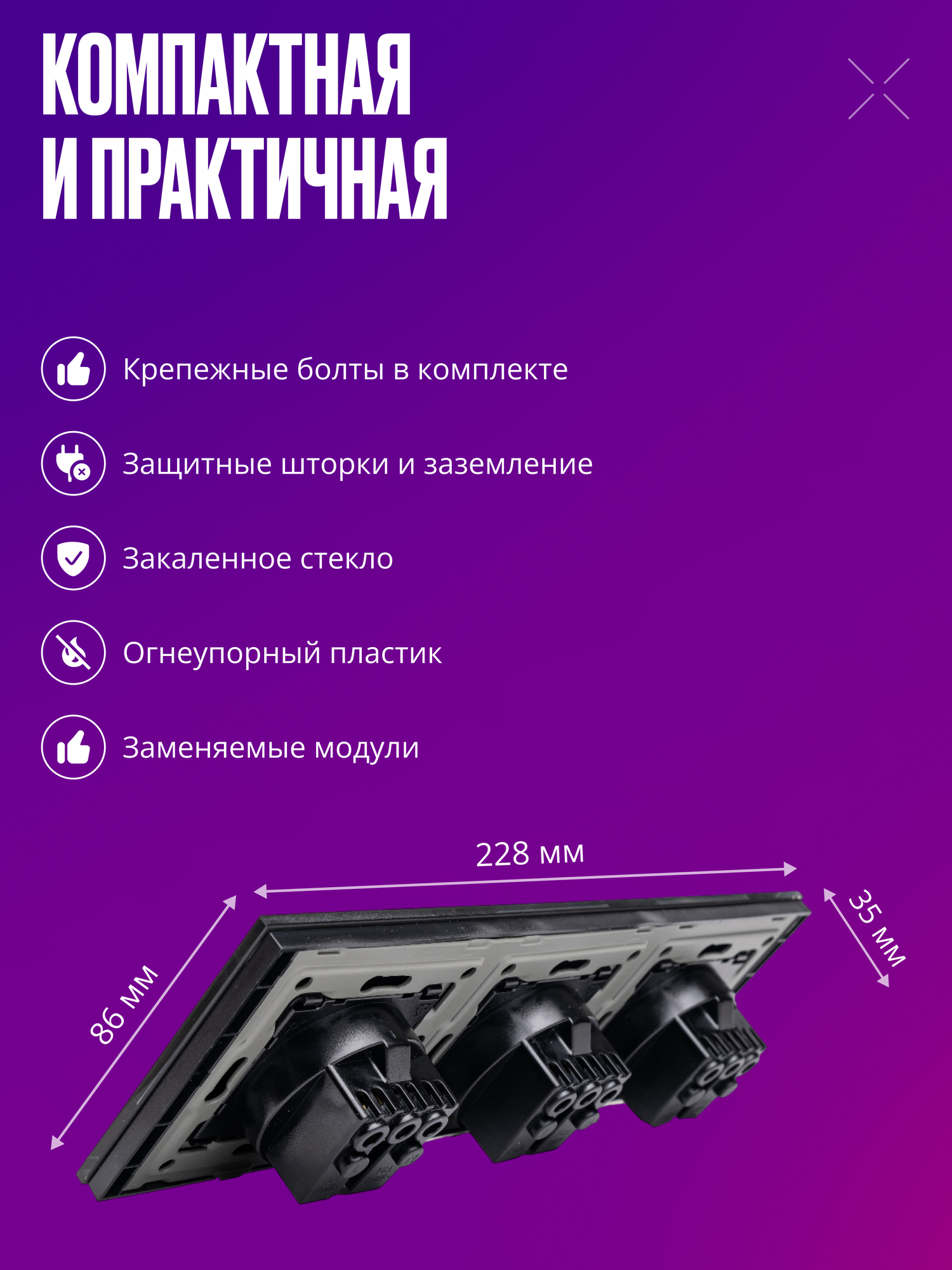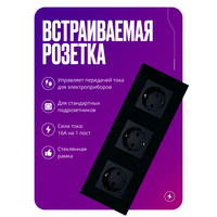 Розетка тройная встраиваемая на 16 А, 3 поста, черная со стеклянной рамкой, заземлением и шторками: сравнение цен, характеристики, фото, актуальное наличие и цены.