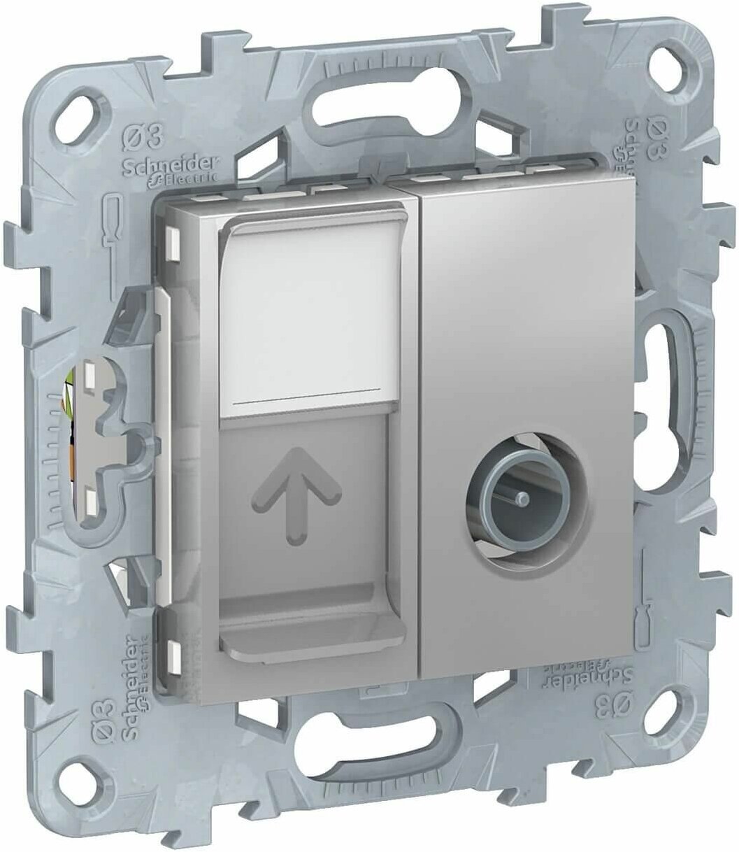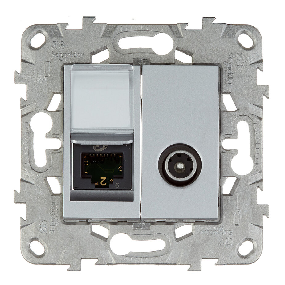 Розетка TV одиночная + комп. RJ45 кат 6 UTP SE Unica NEW, алюминий NU547030: сравнение цен, характеристики, фото, актуальное наличие и цены.