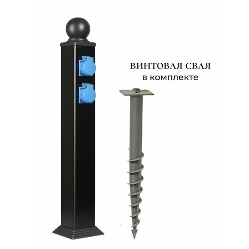 Розетка уличная влагозащищенная на 2 EURO розетки 220V, с крышками, на садовом столбике, Черная (свая в комплекте): сравнение цен, характеристики, фото, актуальное наличие и цены.