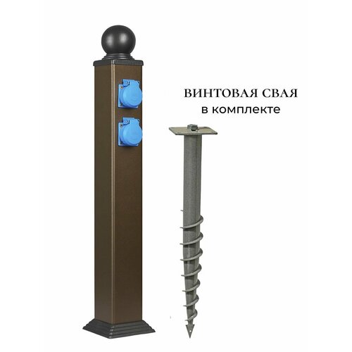 Розетка уличная влагозащищенная на 2 EURO розетки 220V, с крышками, на садовом столбике, Коричневая (свая в комплекте): сравнение цен, характеристики, фото, актуальное наличие и цены.