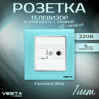 Розетка телевизионная в рамке из закаленного стекла голубая Vesta-Electric Exclusive Blue: сравнение цен, характеристики, фото, актуальное наличие и цены.