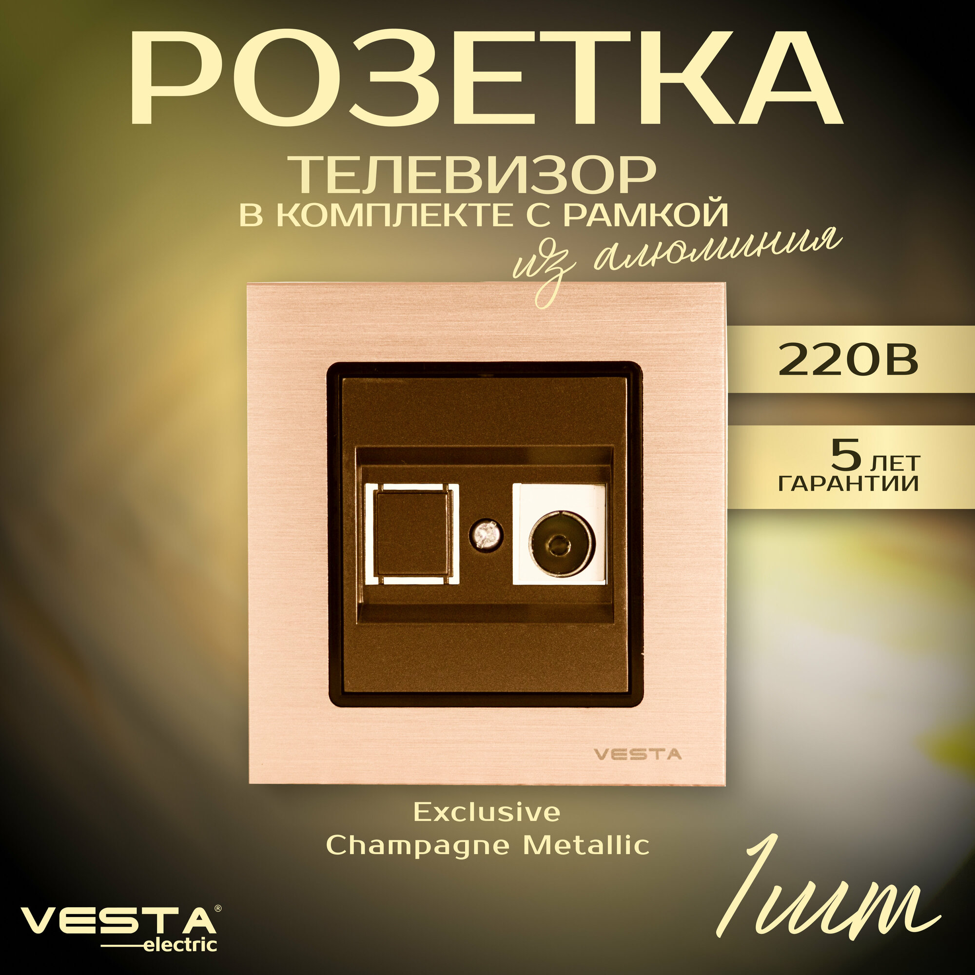 Розетка телевизионная в рамке из алюминия Vesta-Electric Exclusive Champagne Metallic: сравнение цен, характеристики, фото, актуальное наличие и цены.
