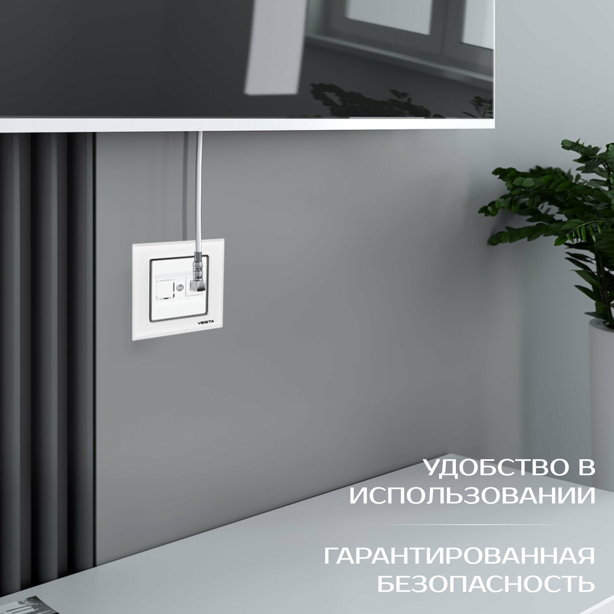 Розетка телевизионная в рамке из закаленного стекла белая Vesta-Electric Exclusive White: сравнение цен, характеристики, фото, актуальное наличие и цены.