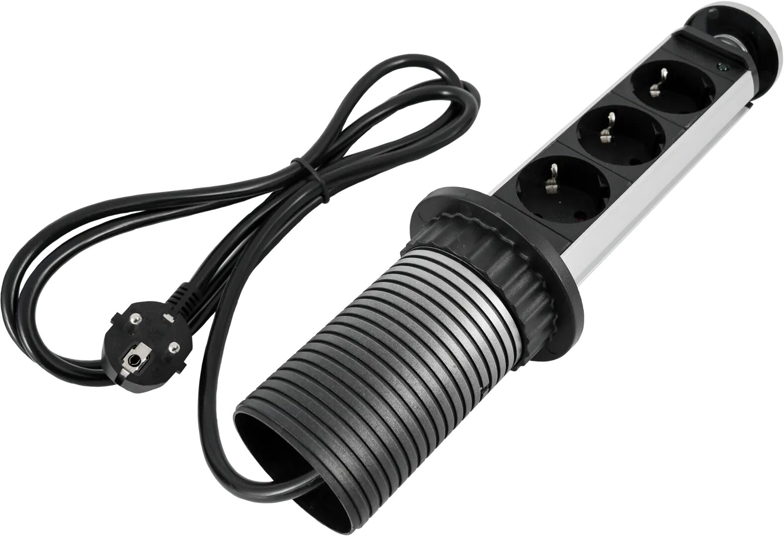 Розетка встраиваемая и выдвижная в столешницу Skybeam 3 розетки с заземлением 2 м 3500 Вт цвет серый