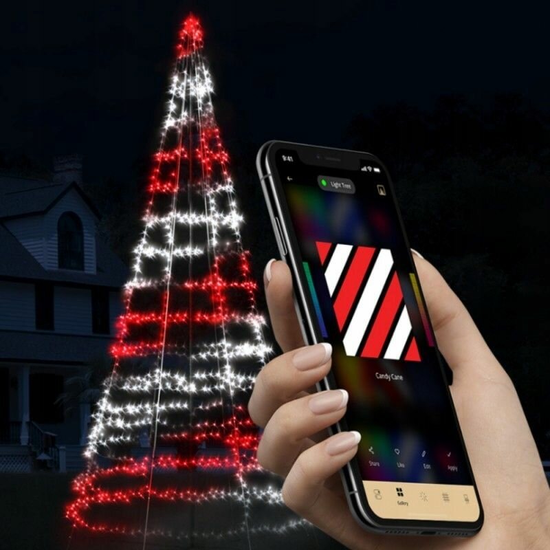 Светящаяся светодиодная елка 4M - Twinkly Light Tree - 750 шт. RGB+W + BT + Wi-Fi. Управление через приложение для смартфона. Ёлка с огнями - Огни, которые вам понравятся . Эти революционные светодиодные гирлянды привносят в наши дома уникальное световое оформление с использованием самых современных технологий. Светодиодное дерево — освещение управляется через мобильное приложение , совместимое как с Android, так и с iOS . Светодиодное дерево состоит из центрального столба высотой 4 метра и 750 светодиодов цветных RGB+W, протянутых сверху вниз, диаметр нижнего круга 2 метра, цвет кабеля черный.