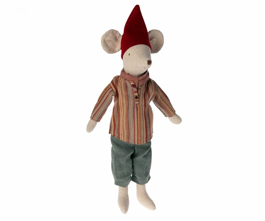 Классический мышонок Maileg среднего размера одет в уютную Рождественскую одежду. Используйте его для игр или как часть домашнего декора. Его новогодний наряд можно снять, чтобы по окончании сезона вы могли переодеть его и продолжить игру.