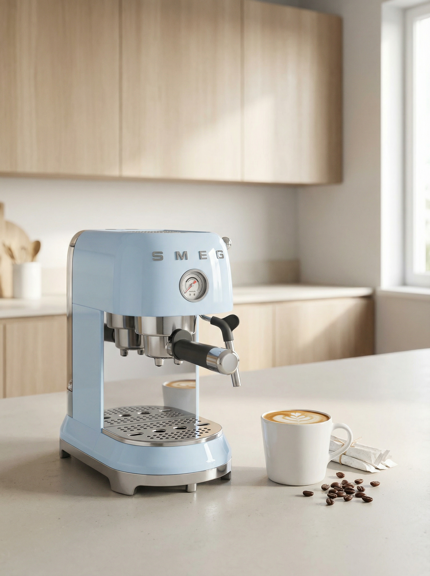 Рожковая эспрессо кофемашина Smeg ECF03PBEU, пастельный голубой: сравнение цен, характеристики, фото, актуальное наличие и цены.