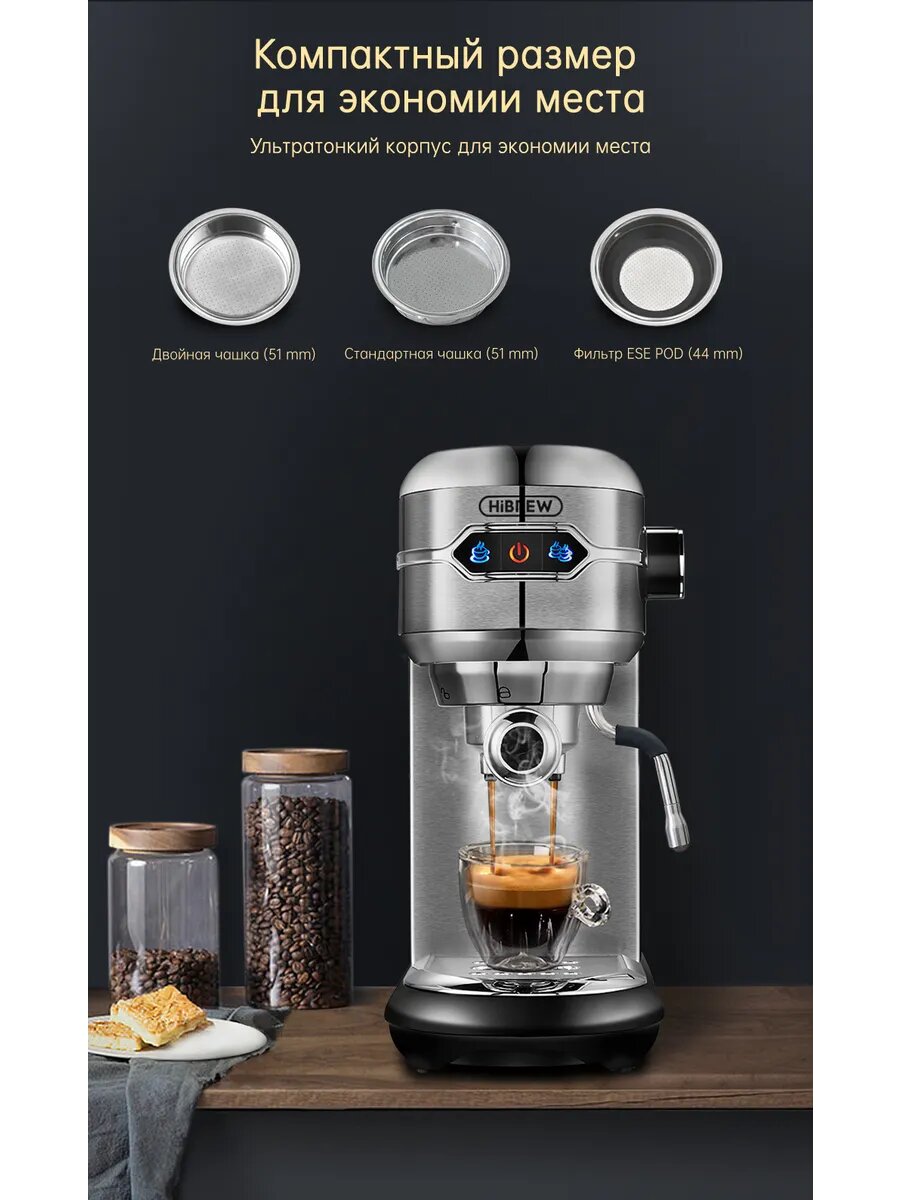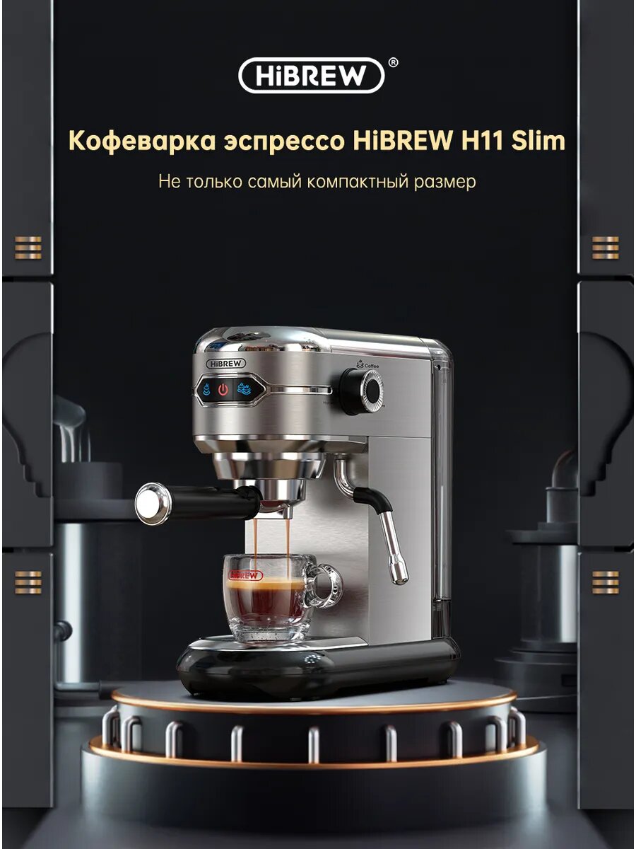 Рожковая кофемашина Hibrew H11, с капучинатором, 1,2 бар, нержавеющая сталь: сравнение цен, характеристики, фото, актуальное наличие и цены.