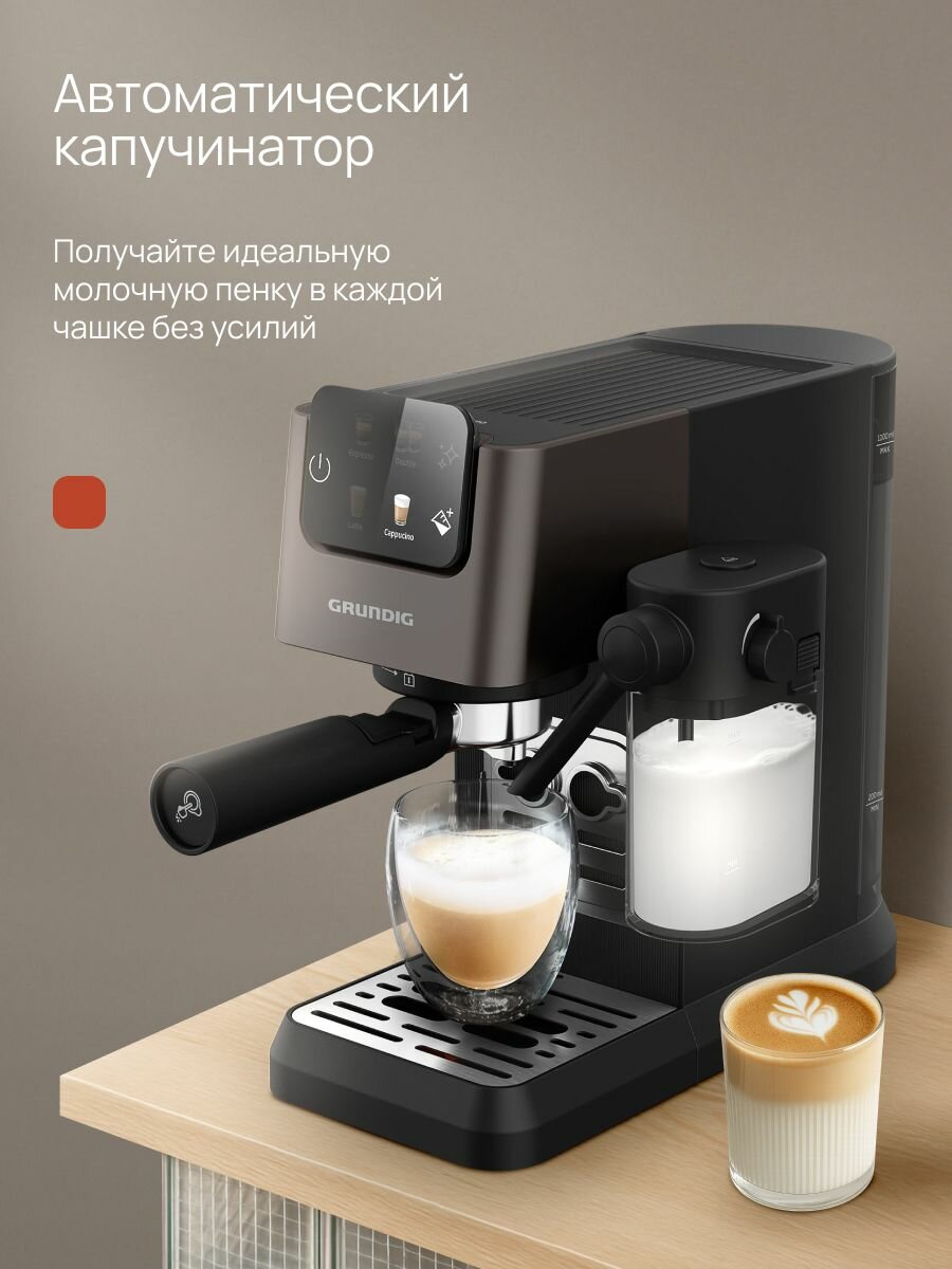 Купить Рожковая кофеварка 2 в 1 Grundig KSM 6430, 20 бар, 4 программы, сенсорное управление, капучинатор, рожок для капсульного кофе с доставкой по всей России.