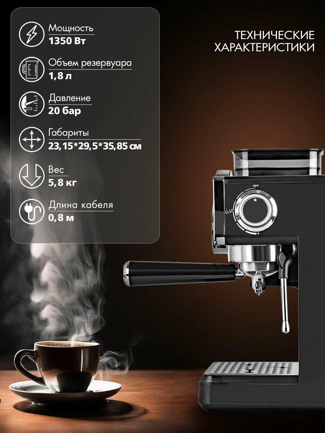 Рожковая кофеварка ENDEVER Costa-1093, встроенная кофемолка, сенсорное управление: сравнение цен, характеристики, фото, актуальное наличие и цены.