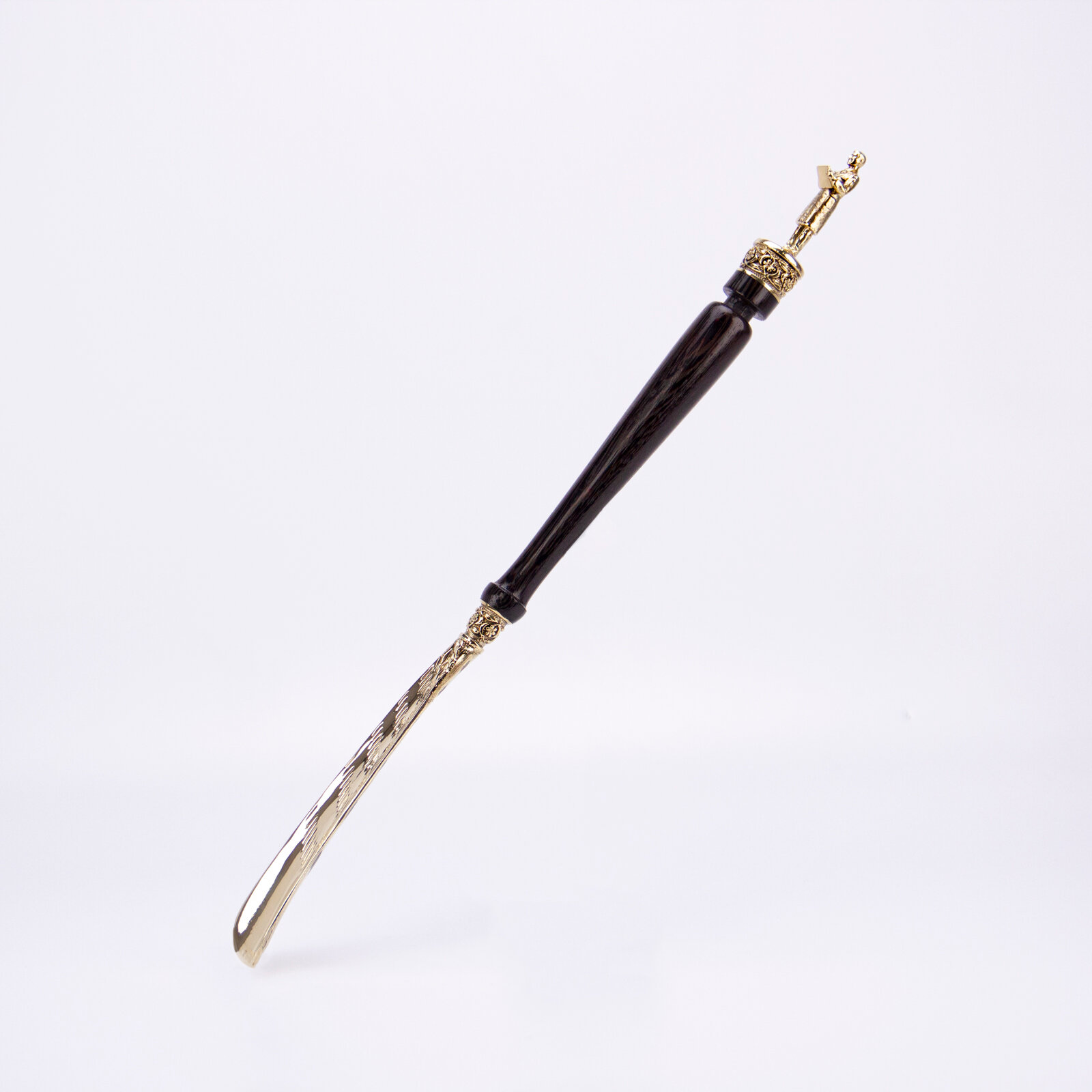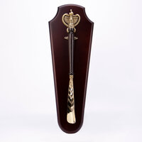 Размер панно: 560 × 205 × 70 мм. Размер рожка: 445 х 45 х 35 мм. Размер крючка: 118 × 80 × 33 мм. Точное литье из бронзы. Ручная работа.