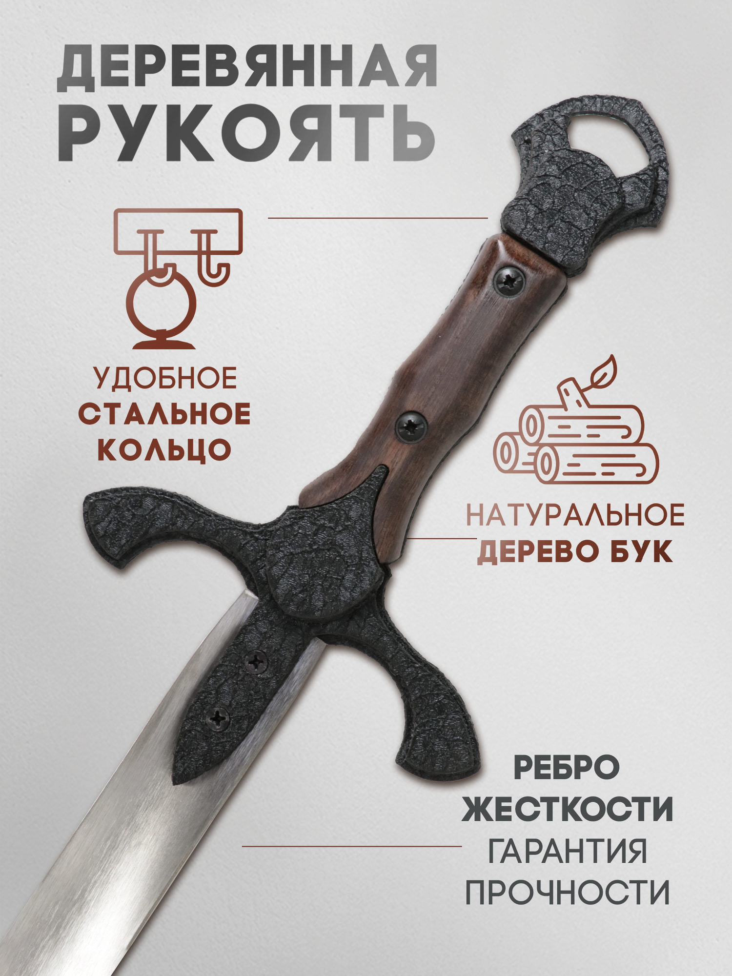 Ручка изготовлена из стали ручной ковки с деревянными накладками из ясеня. Полотно из нержавеющей стали толщиной 2мм.
