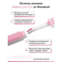 Блеск для губ ROM&ND Glasting Color Gloss 01 Peony Ballet: глянцевый финиш и естественный объем