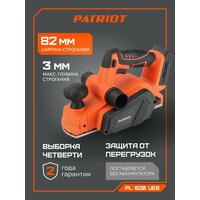 Купить Рубанок PATRIOT PL 820UES, аккумуляторный, ширина строгания 82 мм, глубина 3 мм с доставкой по всей России.