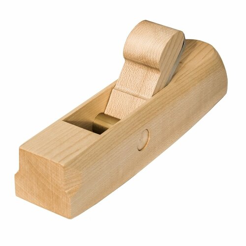 Рубанок-горбач петроградъ, прямая РК. Колодка рубанка выполнена из клёна имеет вставку из латуни для надежной фиксации ножа. Покрытие - тунговое масло. Клин также изготовлен из клёна. Нож выполнен из легированной инструментальной стали 9ХС твердостью 59-61 HRC. Угол установки ножа - 45°. Размеры ножа: длина - 110 мм, ширина - 30 мм, толщина ножа минимальная - 3,2 мм, толщина максимальная - 4,5 мм. Угол заточки ножа 30°. Рубанок предназначен для выборки криволинейных поверхностей.