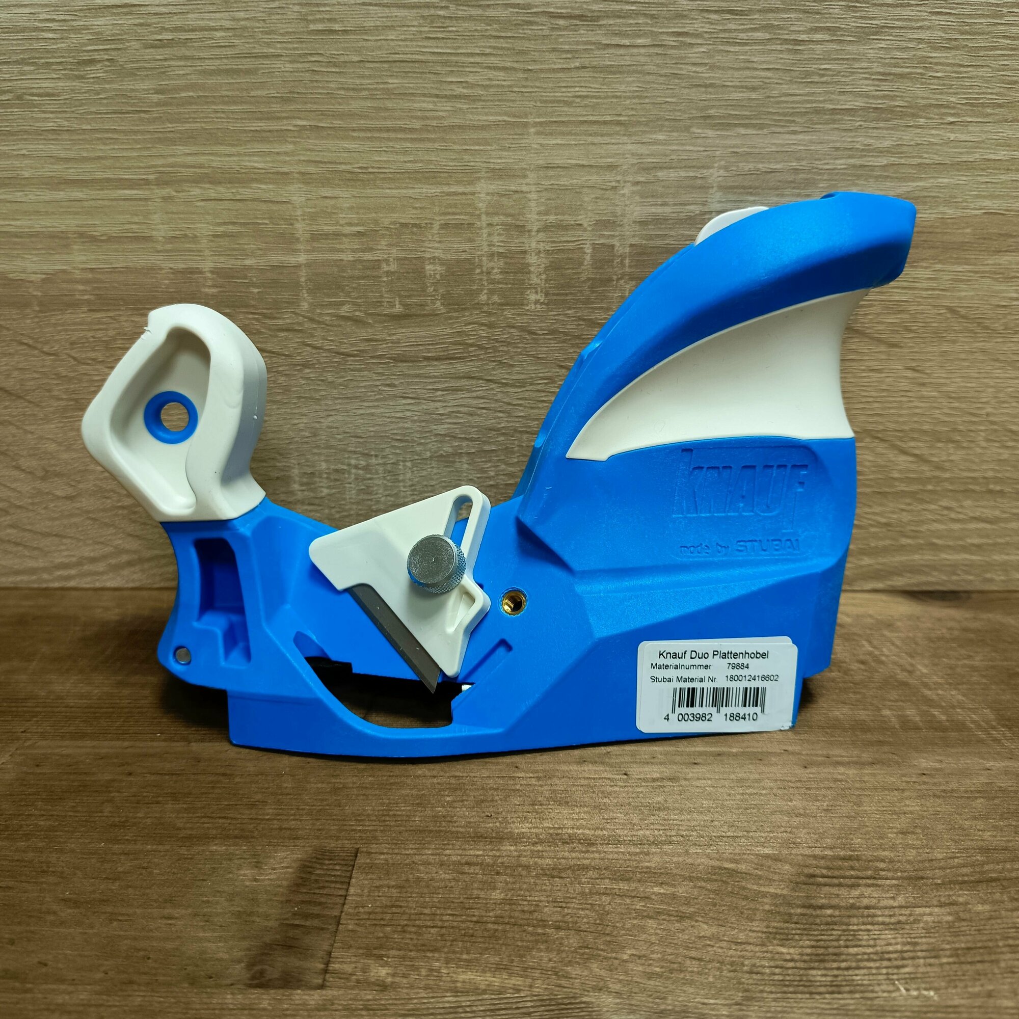 Рубанок кромочный-обдирочный КНАУФ-платтенхобель DUO подходит для легкой обработки плит. Он используется для снятия фаски кромок под двумя разными углами (22,5 ° и 45 °) и для торцевой шлифовки поперечных кромок. Он обеспечивает чистую и быструю работу и сочетает в себе функции кромочного рубанка и обдирочного рубанка. КНАУФ-платтенхобель DUO изготовлен из пластика, что позволяет снизить вес.