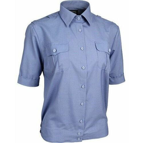 Форменная рубашка имеет классический крой, который подчеркивает фигуру, делая акцент на талии. Короткий рукав добавляет легкости и воздушности образу, делая его более подходящим для теплой погоды. Голубой цвет является универсальным и подходит практически под любой образ, будь то строгий деловой или расслабленный casual.