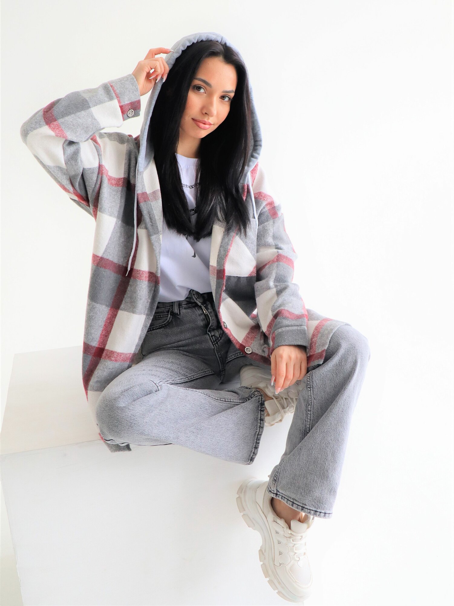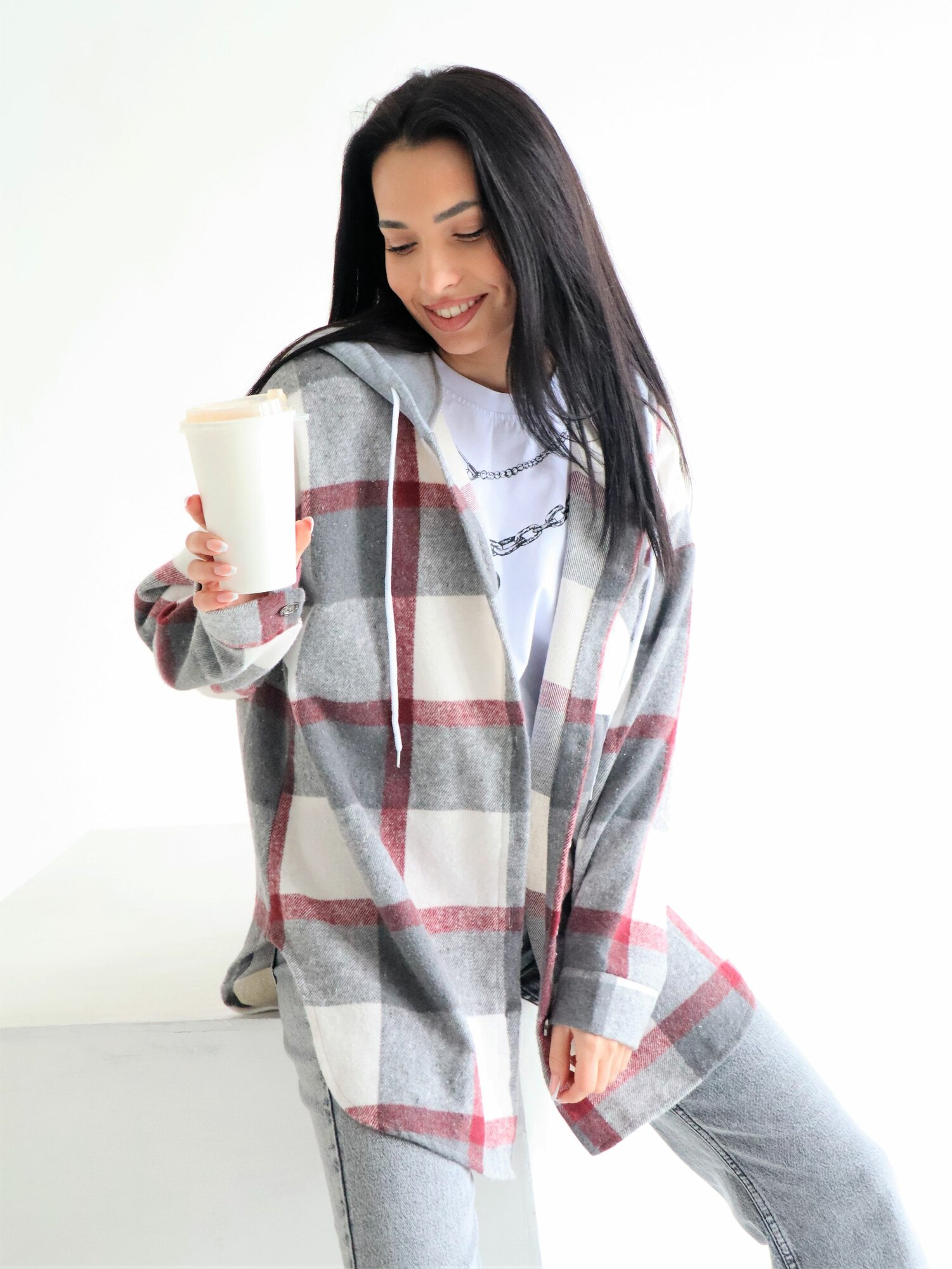 Рубашка Lady Gina в клетку с капюшоном фланелевая теплая, размер 52-54, серый, белый: сравнение цен, характеристики, фото, актуальное наличие и цены.