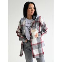 Купить Рубашка Lady Gina в клетку с капюшоном фланелевая теплая, размер 52-54, серый, белый с доставкой по всей России.
