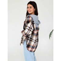 Купить Рубашка Lady Gina в клетку с капюшоном фланелевая теплая, размер 60-62, оранжевый, серый, белый, черный с доставкой по всей России.