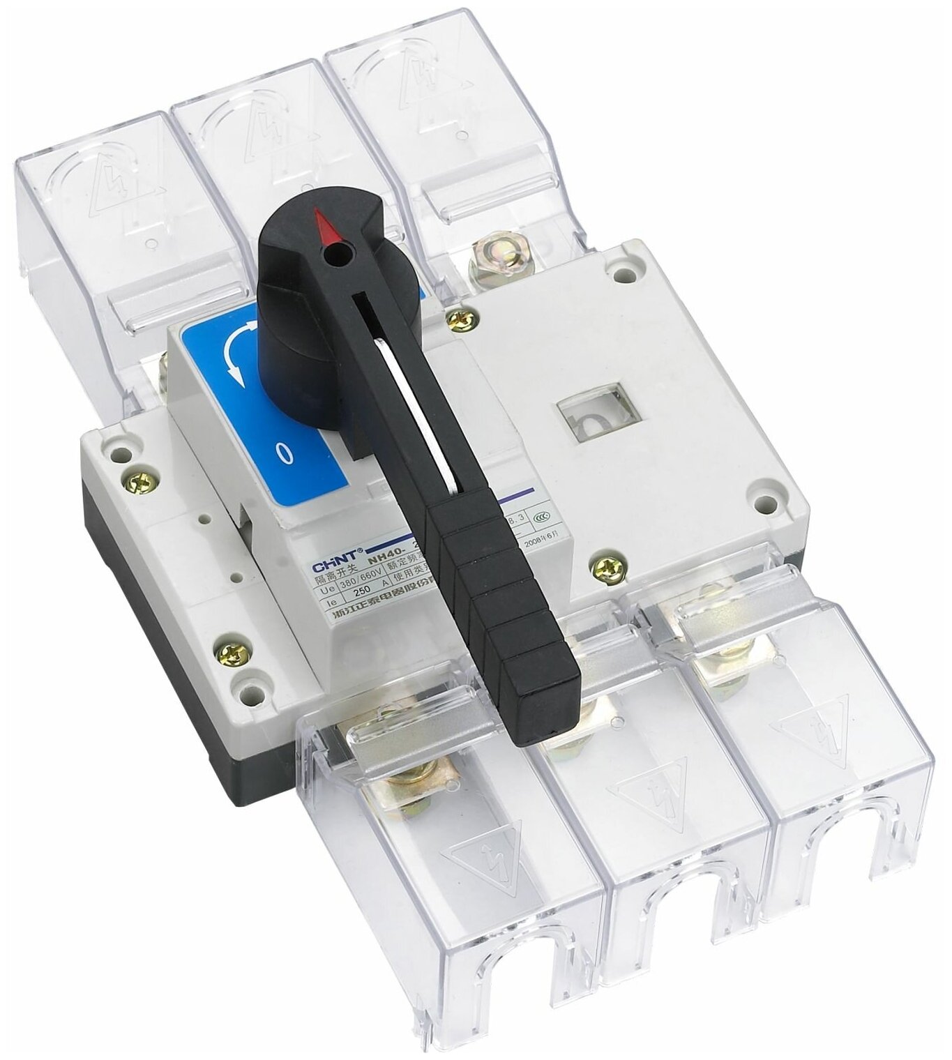 Выключатель-разъединитель CHINT 3п 250А стандартная рукоятка управления NH40-250/3 393264 предназначен для коммуникации силовых электрических цепей переменного тока номинальным напряжением до 690 В номинальной частоты 50Гц и постоянного тока на номинальное напряжение до 440 В .