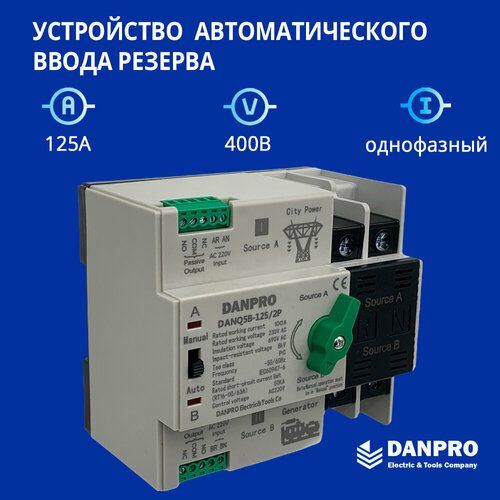 Устройство автоматического ввода резерва c мотором привода DANPRO DANQ5B-125/2P АВР для генератора на 125А однофазный / Рубильник реверсивный на DIN рейку: сравнение цен, характеристики, фото, актуальное наличие и цены.