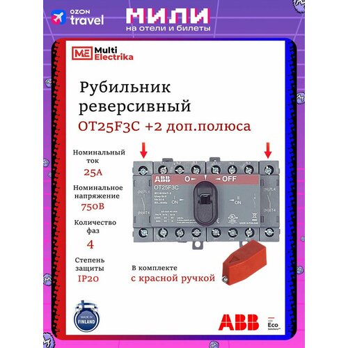 Купить Рубильник реверсивный ABB трёхфазный с доп. полюсами OT25F3C 25А с красной ручкой с доставкой по всей России. Рубильник реверсивный ABB трёхфазный с доп. полюсами OT25F3C 25А с красной ручкой: сравнение цен, характеристики, фото, актуальное наличие и цены.