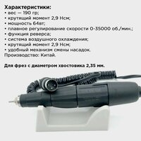 ручка для маникюра STRONG 102L (152мм*29мм) вес — 190 гр; крутящий момент 3,0 Нсм; скорость вращения 0-35000 об/мин; мощность 64вт