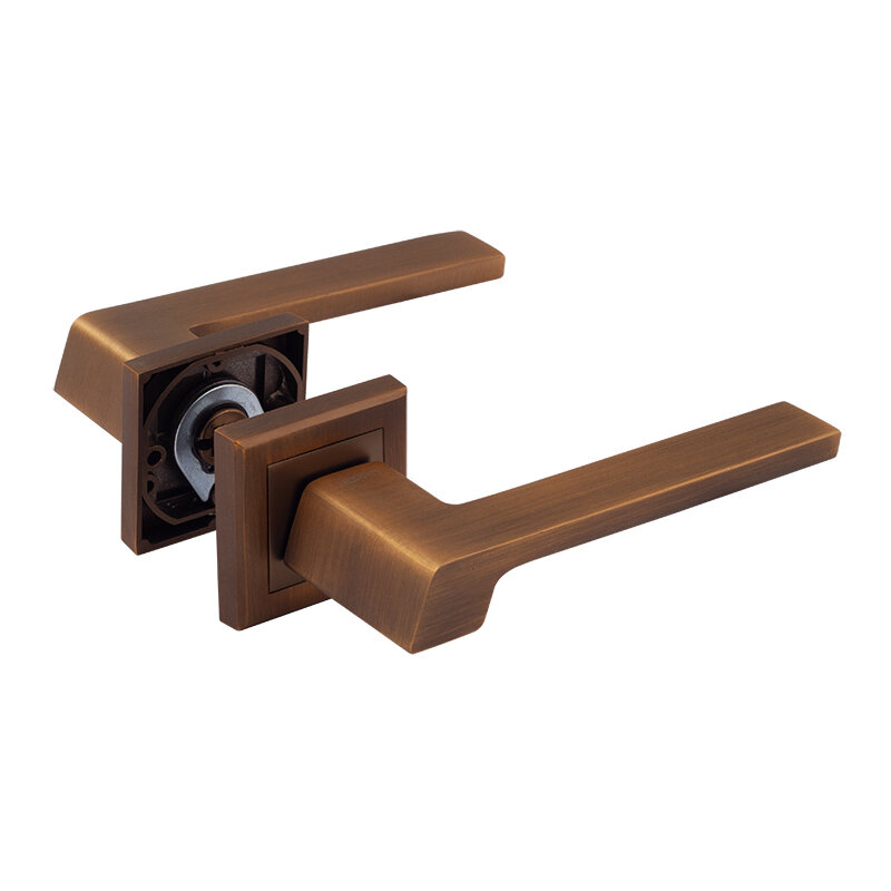 Комплект из 2 ручек на квадратной розетке для входных и межкомнатных дверей. Материал изготовления - алюминий. Покрытие - гальваническое, 5 слоев. Упаковка - картонная коробка. В комплекте крепеж, стяжные винты, соединительный квадрат. Гарантия 1 год.