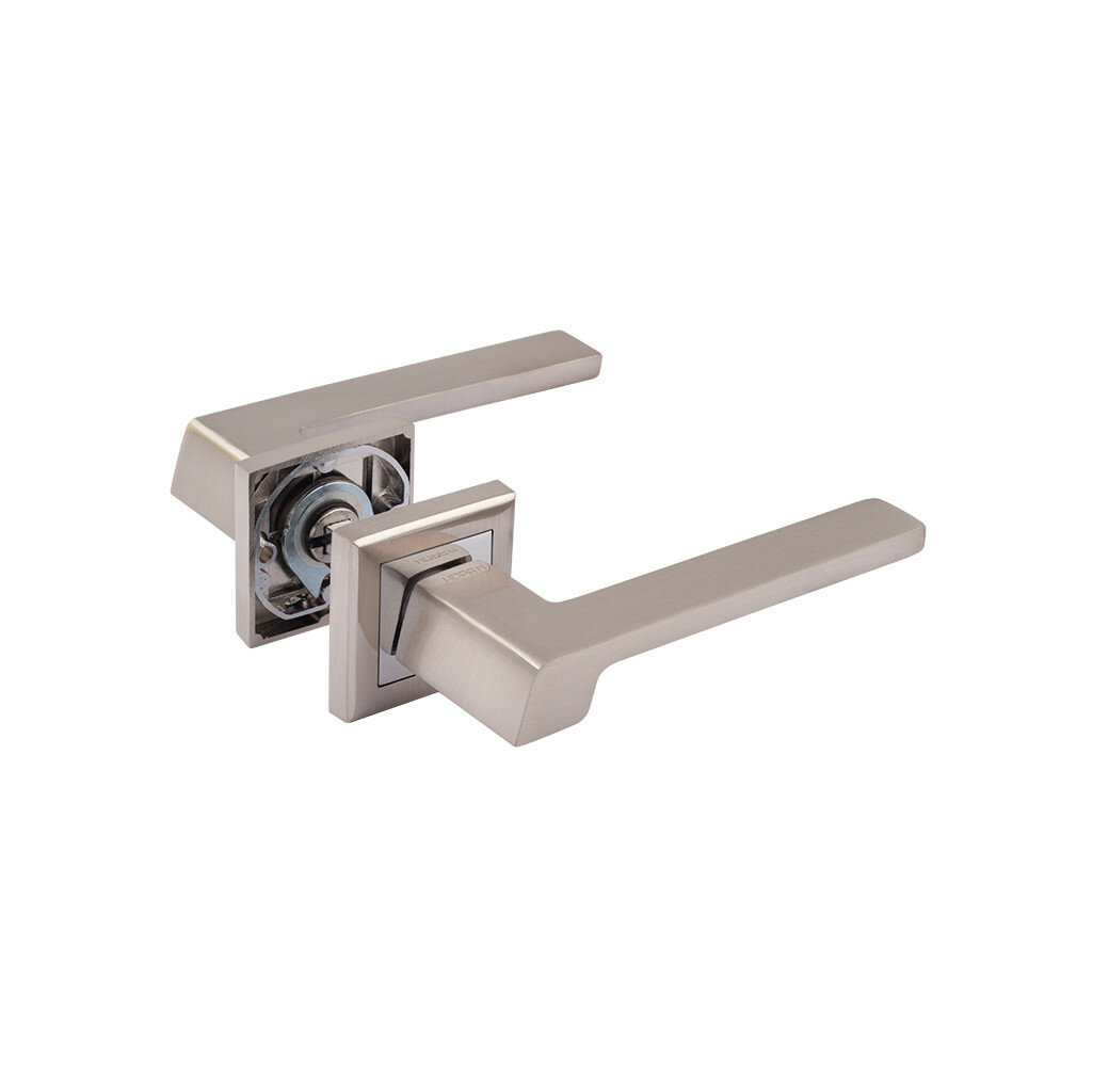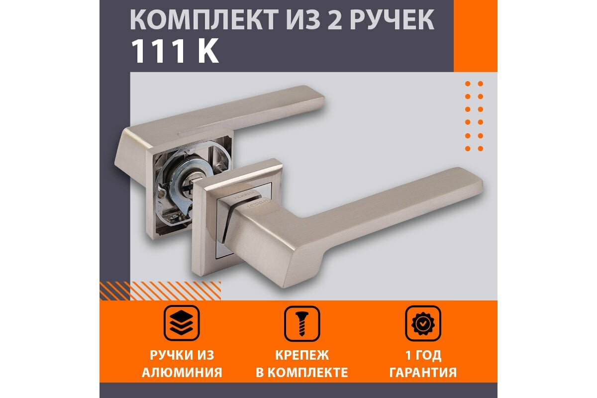 Ручка дверная для входных и межкомнатных дверей 111K AL от нора-м – образец лаконичного стиля, столь популярного в современных интерьерах. Ручка дверная межкомнатная универсальная, подходит для левых и правых дверей, имеет квадратное основание и строгие прямоугольные формы. Дверные ручки межкомнатные изготовлены из сплавов ЦАМ (основание и декоративная часть розетки) и алюминия (сплав силумина и кремния, из которого изготовлена сама ручка), и покрыты многослойным гальваническим покрытием (5 слоев). Это позволяет устанавливать данную модель как на межкомнатные, так и на входные двери, в том числе на металлические двери.