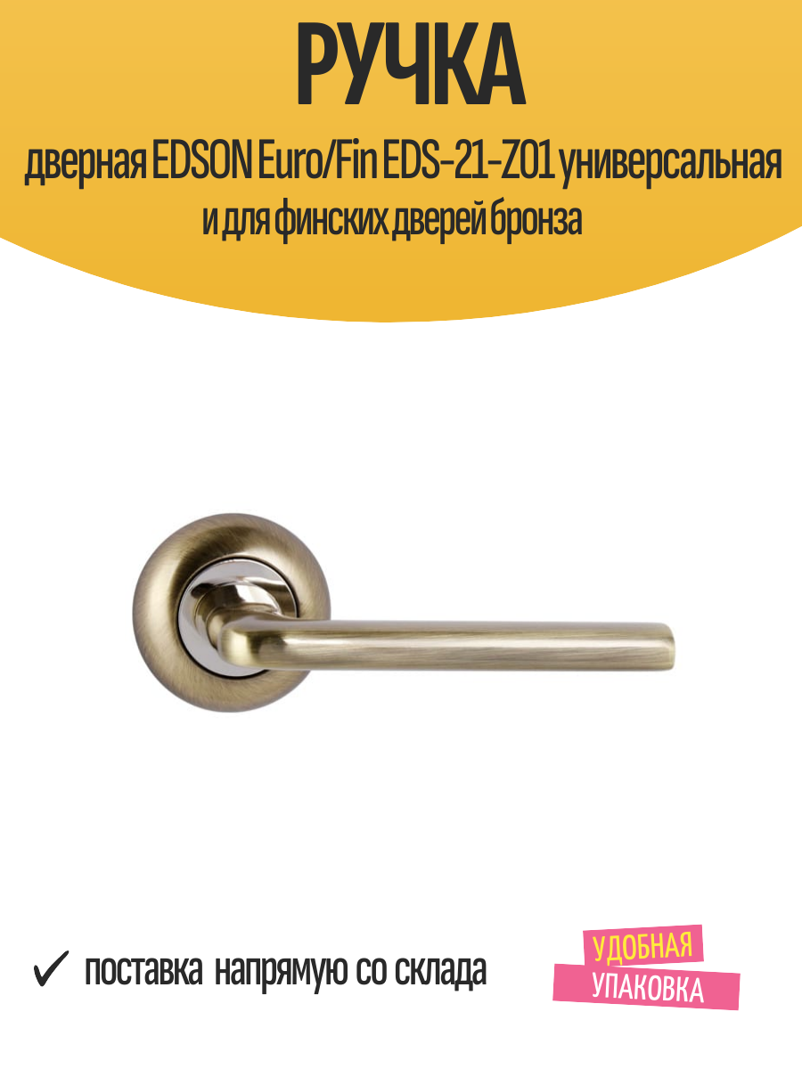 Купить Ручка дверная EDSON Euro/Fin EDS-21-Z01 универсальная и для финских дверей бронза с доставкой по всей России. Ручка дверная EDSON Euro/Fin EDS-21-Z01 универсальная и для финских дверей бронза: сравнение цен, характеристики, фото, актуальное наличие и цены.