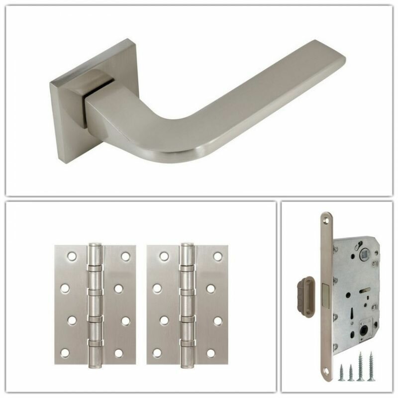 Ручка дверная межкомнатная Adden Bau URSA_S-552_NICKEL_MAG, никель (ручка + 2 универсальные петли + магнитный замок)