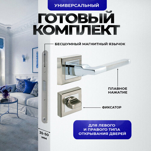 Комплект дверных ручек Loid для деревянных межкомнатных и металлических входных дверей, толщина полотна при этом должна составлять от 35 до 50 мм. Дверные ручки в комплекте универсальные, подходят на левые и правые двери. Отличительные особенности дверной фурнитуры – износоустойчивое и прочное покрытие, надежный механизм, качественные материалы, уникальный дизайн, легкий монтаж. Изготовлена из сплавов ЦАМ (основание и декоративная часть розетки) и алюминия (сплав силумина и кремния, из которого изготовлена сама ручка), и покрыта многослойным гальваническим покрытием (6 слоев). Это позволяет устанавливать данную модель как на межкомнатные, так и на входные двери, в том числе металлические. Такое основание придает прочность и устойчивость к нагрузкам, а также защищено от коррозии. Пружинный механизм выполнен из закаленной стали в 3 витка, ресурс работы рассчитан на не менее 400 000 рабочих циклов. Стяжки для установки - в комплекте. Гарантия на продукцию - 1 год.