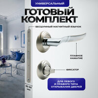 Ручка дверная межкомнатная Loid 370 SNCP + магнитная защелка 9650M SN + завертка круглая SN/CP серебристый, матовый хром, никель