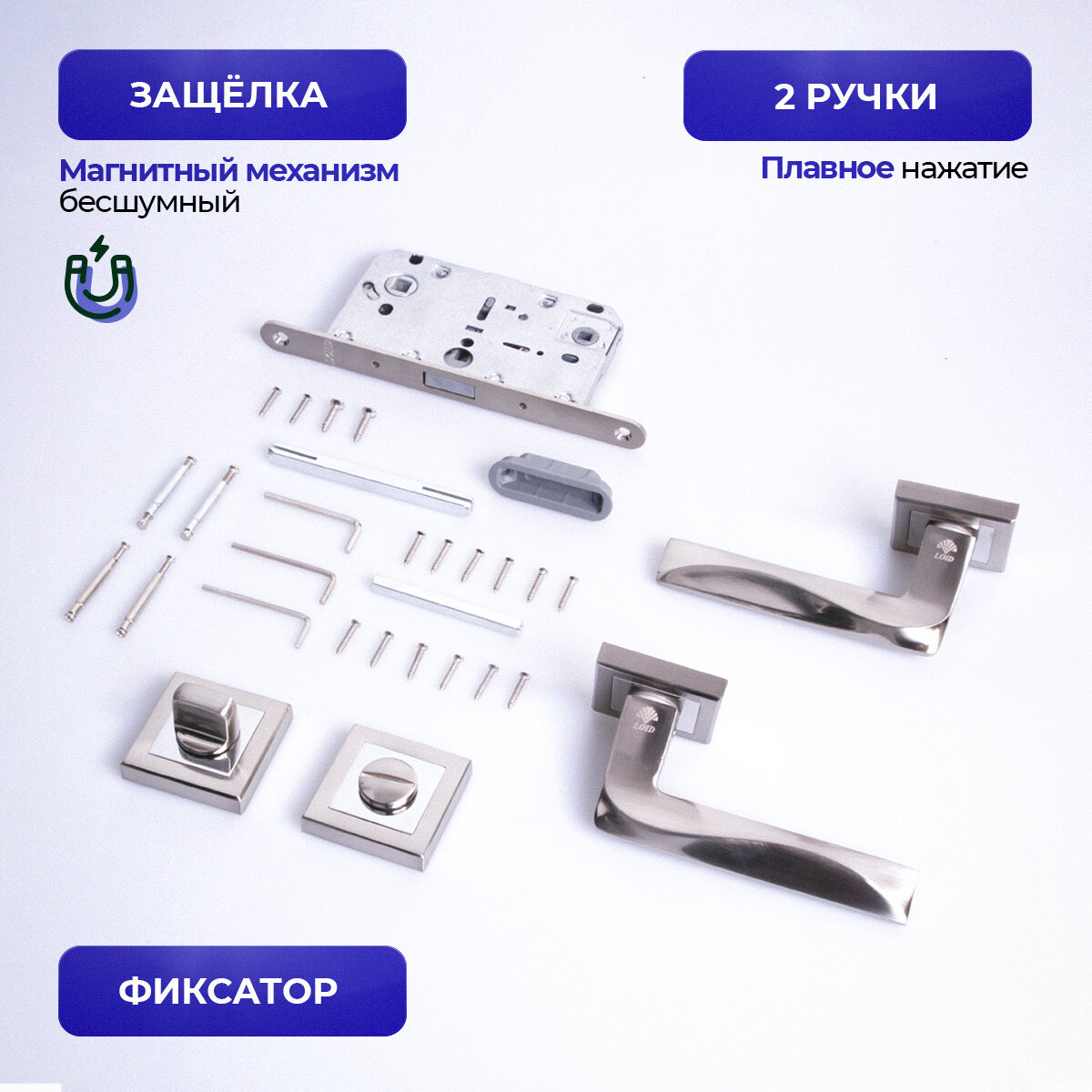 Ручка дверная межкомнатная Loid 420 SNCP + магнитная защелка 9650MSN + завертка квадратная SN/CP серебристый, матовый хром, никель комплект: сравнение цен, характеристики, фото, актуальное наличие и цены.