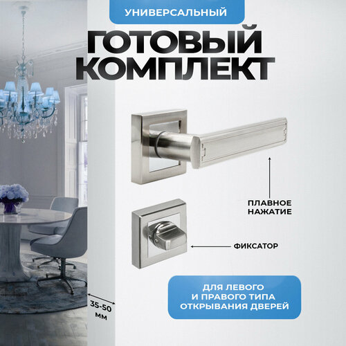 Комплект дверных ручек Loid для деревянных межкомнатных и металлических входных дверей, толщина полотна при этом должна составлять от 35 до 50 мм. Дверные ручки в комплекте универсальные, подходят на левые и правые двери. Отличительные особенности дверной фурнитуры – износоустойчивое и прочное покрытие, надежный механизм, качественные материалы, уникальный дизайн, легкий монтаж. Изготовлена из сплавов ЦАМ (основание и декоративная часть розетки) и алюминия (сплав силумина и кремния, из которого изготовлена сама ручка), и покрыта многослойным гальваническим покрытием (6 слоев). Это позволяет устанавливать данную модель как на межкомнатные, так и на входные двери, в том числе металлические. Такое основание придает прочность и устойчивость к нагрузкам, а также защищено от коррозии. Пружинный механизм выполнен из закаленной стали в 3 витка, ресурс работы рассчитан на не менее 400 000 рабочих циклов. Стяжки для установки - в комплекте. Гарантия на продукцию - 1 год.
