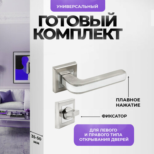 Комплект дверных ручек Loid для деревянных межкомнатных и металлических входных дверей, толщина полотна при этом должна составлять от 35 до 50 мм. Дверные ручки в комплекте универсальные, подходят на левые и правые двери. Отличительные особенности дверной фурнитуры – износоустойчивое и прочное покрытие, надежный механизм, качественные материалы, уникальный дизайн, легкий монтаж. Изготовлена из сплавов ЦАМ (основание и декоративная часть розетки) и алюминия (сплав силумина и кремния, из которого изготовлена сама ручка), и покрыта многослойным гальваническим покрытием (6 слоев). Это позволяет устанавливать данную модель как на межкомнатные, так и на входные двери, в том числе металлические. Такое основание придает прочность и устойчивость к нагрузкам, а также защищено от коррозии. Пружинный механизм выполнен из закаленной стали в 3 витка, ресурс работы рассчитан на не менее 400 000 рабочих циклов. Стяжки для установки - в комплекте. Гарантия на продукцию - 1 год.
