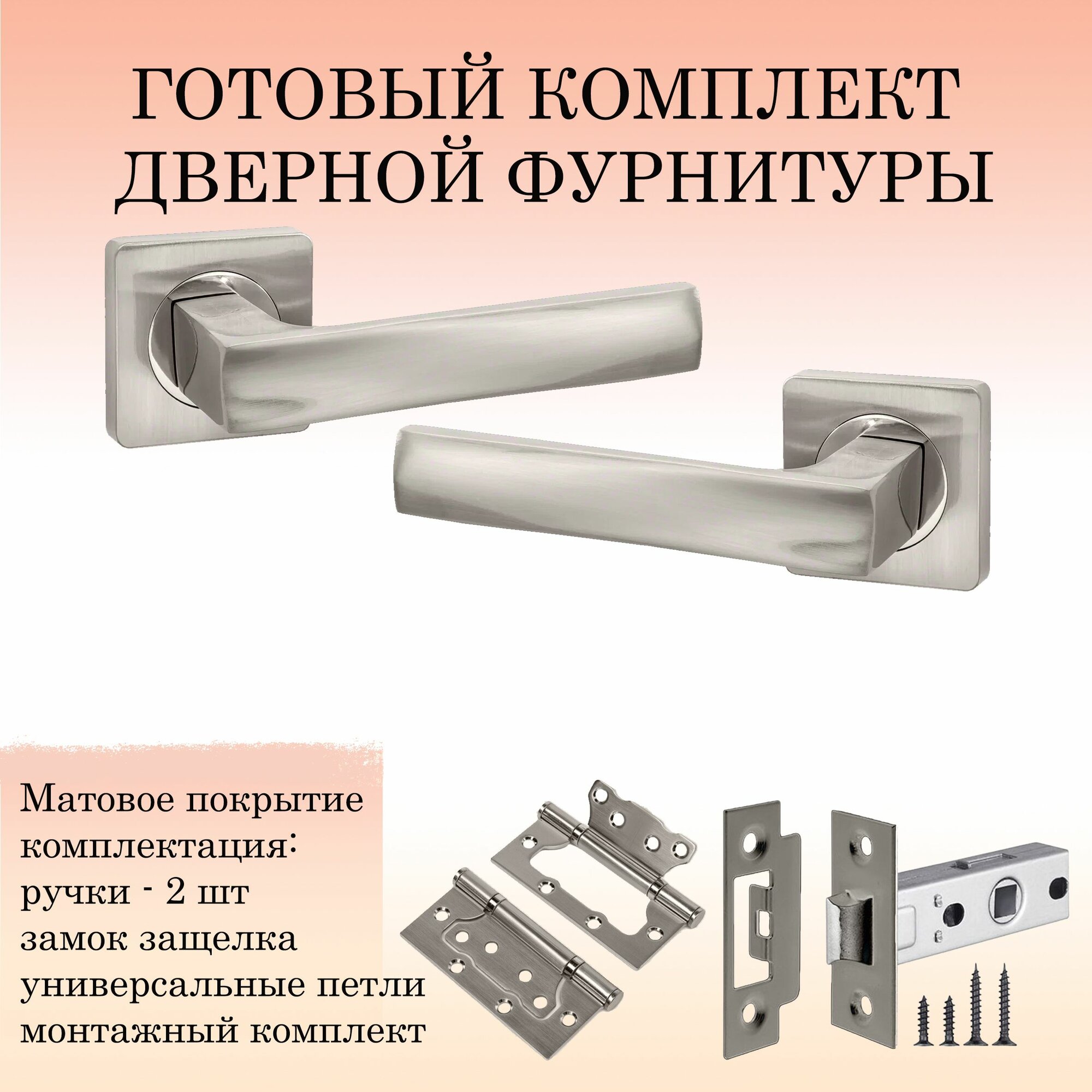 Купить Ручка дверная межкомнатная Puerto INAL_527-02_SN_L6-45, матовый никель (ручка + замок защелка + 2 петли без врезки) с доставкой по всей России. Ручка дверная межкомнатная Puerto INAL_527-02_SN_L6-45, матовый никель (ручка + замок защелка + 2 петли без врезки): сравнение цен, характеристики, фото, актуальное наличие и цены.