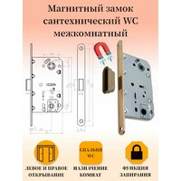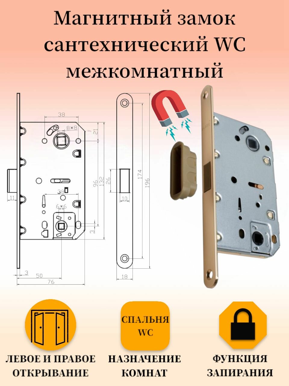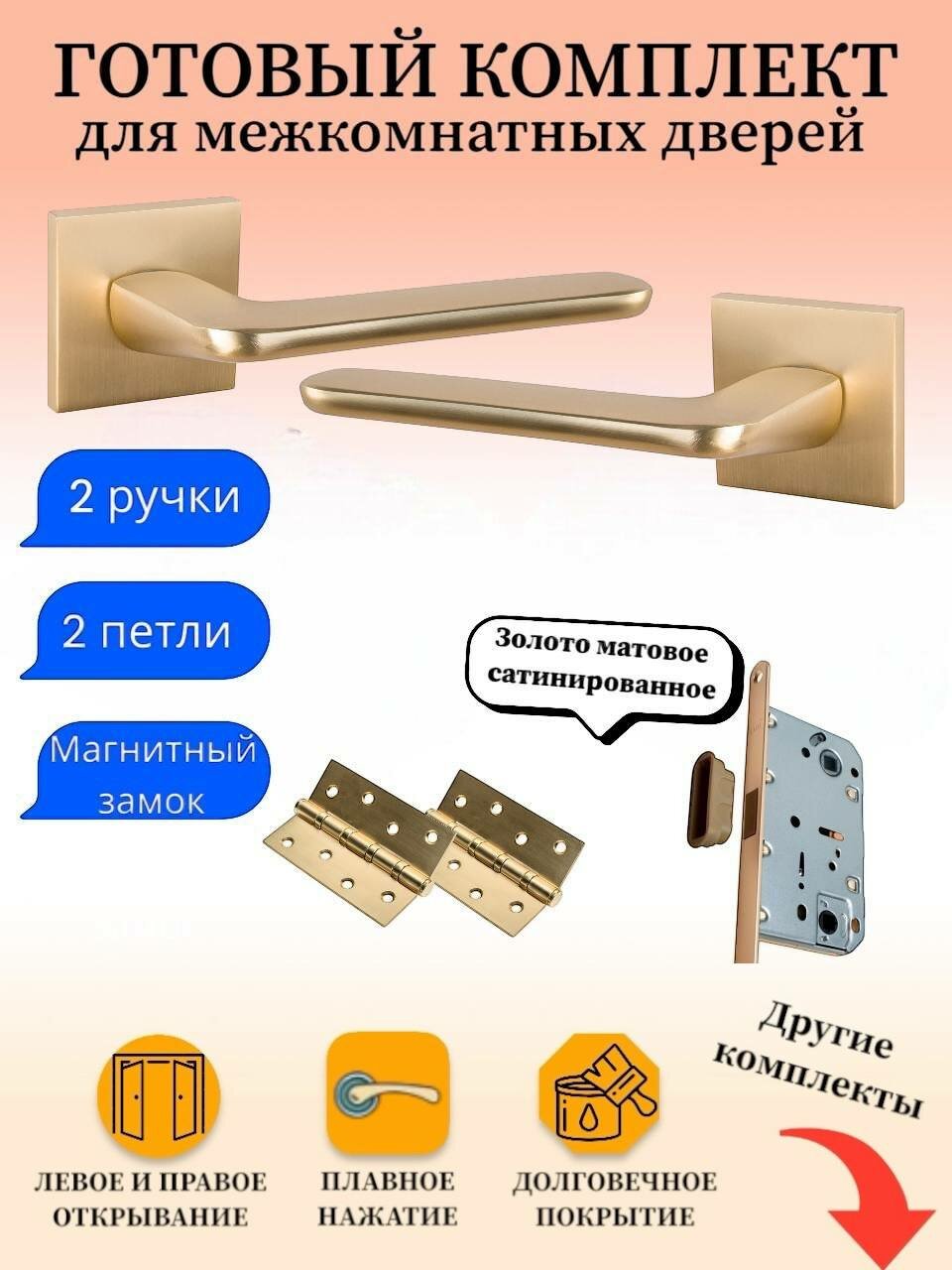 Ручка дверная межкомнатная PUERTO INAL_555-03_slim_SSG_MAG, золото матовое сатинированное (ручка + магнитный замок wc + 2 универсальные петли): сравнение цен, характеристики, фото, актуальное наличие и цены.