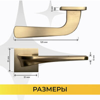 Комплектация: две ручки на одно дверное полотно, соединительный квадрат (8 мм * 8мм*110 мм), защелка, монтажный комплект, ответная планка, фиксатор, замок врезной межкомнатный.