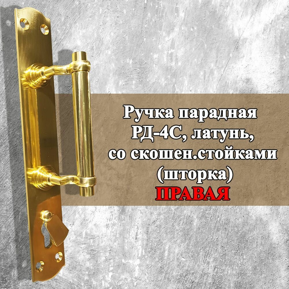 Ручка дверная РД-4С (правая) латунь со скошенными стойками (шторка), фурнитура для дверей: сравнение цен, характеристики, фото, актуальное наличие и цены.