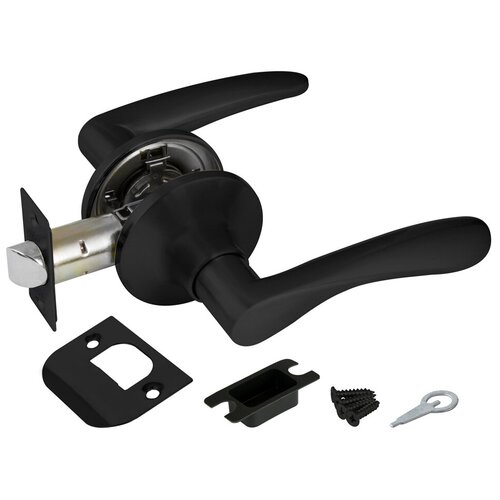 Комплектация: защелка, ответная планка с декоративной заглушкой, дверные ручки, крепежная фурнитура, шаблон и инструкция по установке.