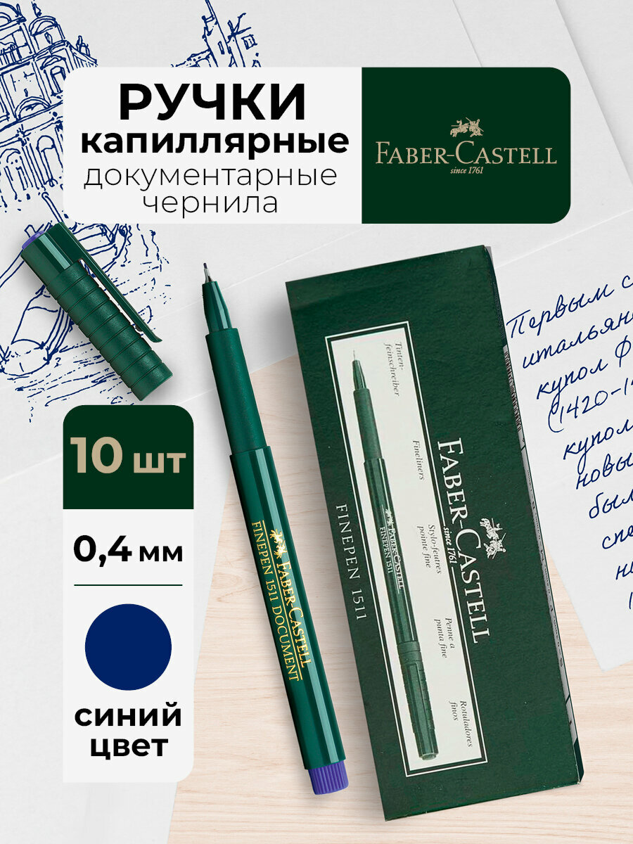 Ручка капиллярная линер Faber-Castell «Finepen 1511» синяя, 0,4 мм, / Набор ручек 10 штук: сравнение цен, характеристики, фото, актуальное наличие и цены.